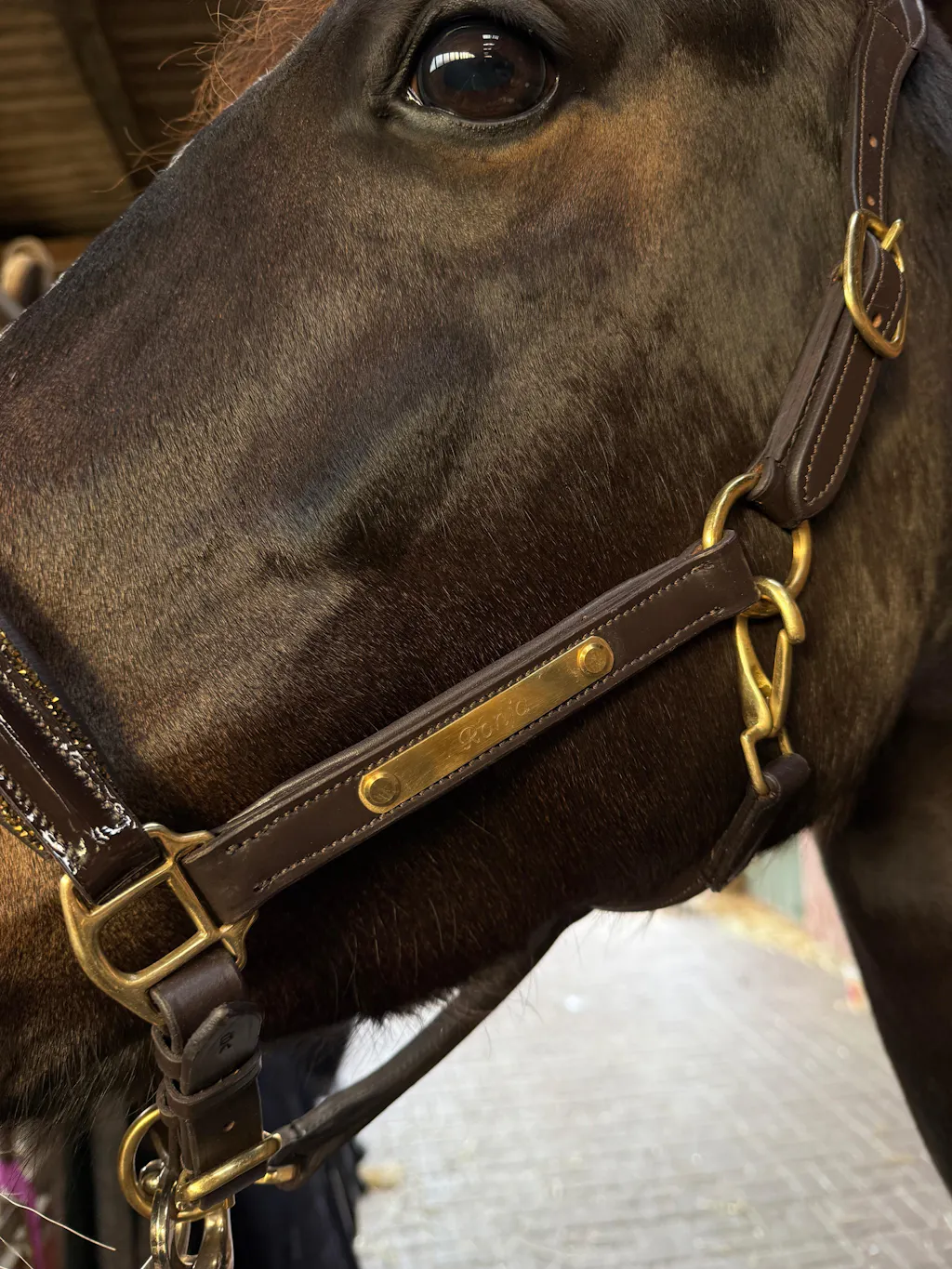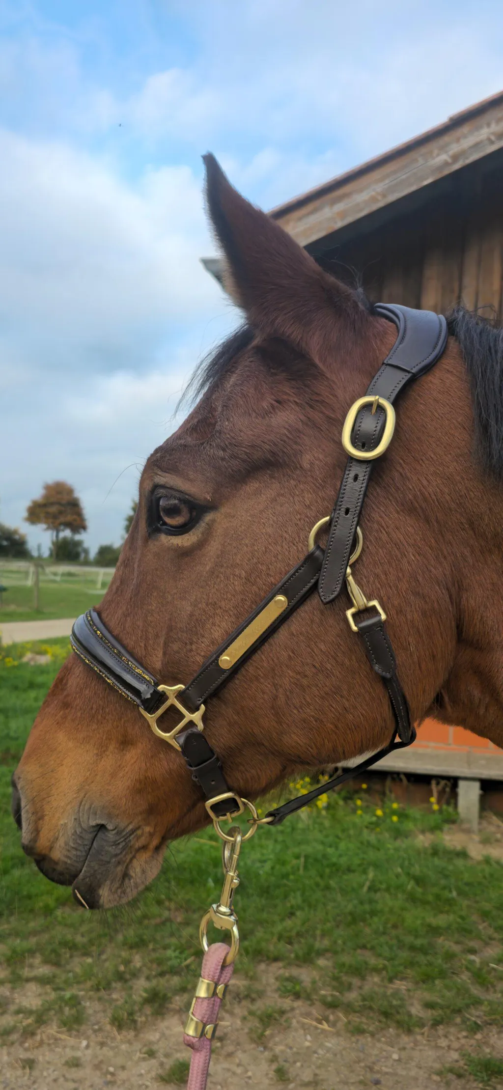 The halter looks amazing on my horse. Sizes are also correct and the gravure has a nice font.